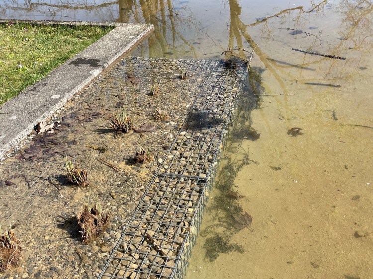 Die Wasserbecken werden von diversen Amphibien zur Laichablage genutzt. Bisher boten sie den Jungtieren keine Versteckmöglichkeit vor Fressfeinden und der Ausstieg aus den Becken war für die Jungtiere kaum möglich.